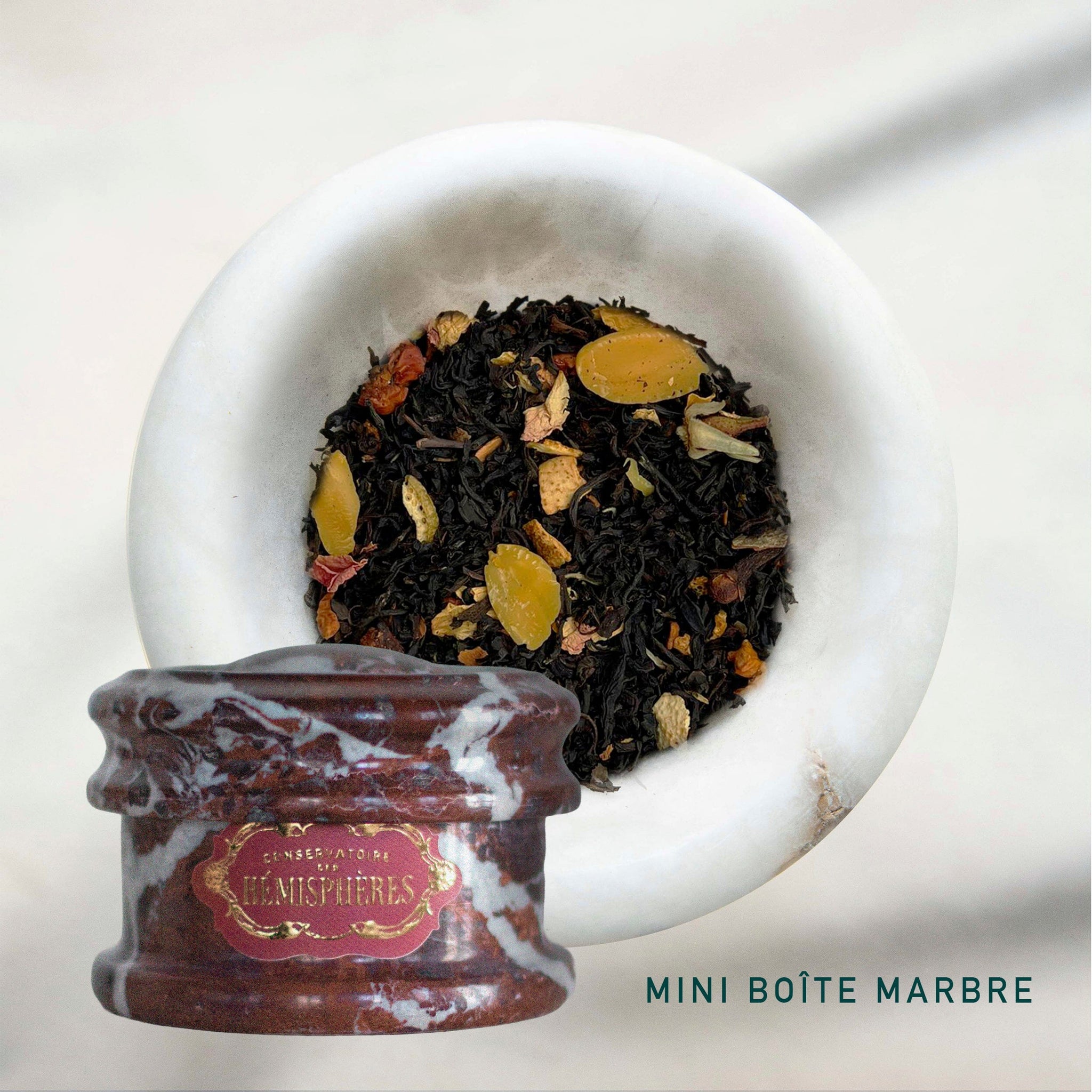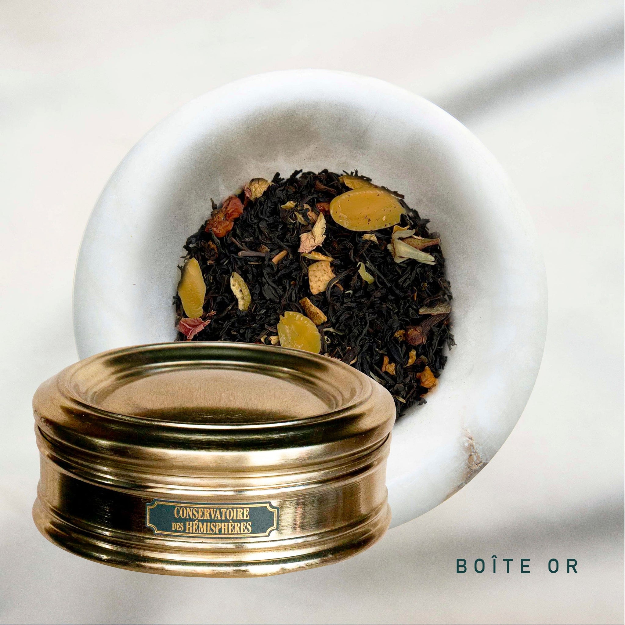 Au cœur d’un hiver aux mille lueurs, le Conservatoire des Hémisphères dévoile une création pensée comme un tour de carrousel : un instant suspendu et réconfortant. Autour de la piste, l’orange entrouvre la parade, fraîche et lumineuse, tandis que la cannelle déroule sa chaleur douce, pareille à un ruban d’ambre. Le thé de Ceylan, solide cavalier, porte l’ensemble avec son caractère noble et droit. Sur son passage, la girofle esquisse une pointe d’allure, précise et enveloppante. Puis viennent les morceaux de pomme, tendres et juteux, qui soufflent une note de fête. Les amandes effilées, en éclats nacrés, ajoutent une grâce gourmande — comme un dernier tour avant que la musique ne s’éteigne. Un thé de constellation et de mouvement, né pour éclairer les soirées et prolonger la magie.